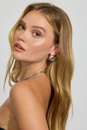 Garage Lined Curve Button Women Earrings Silver | A-9610753